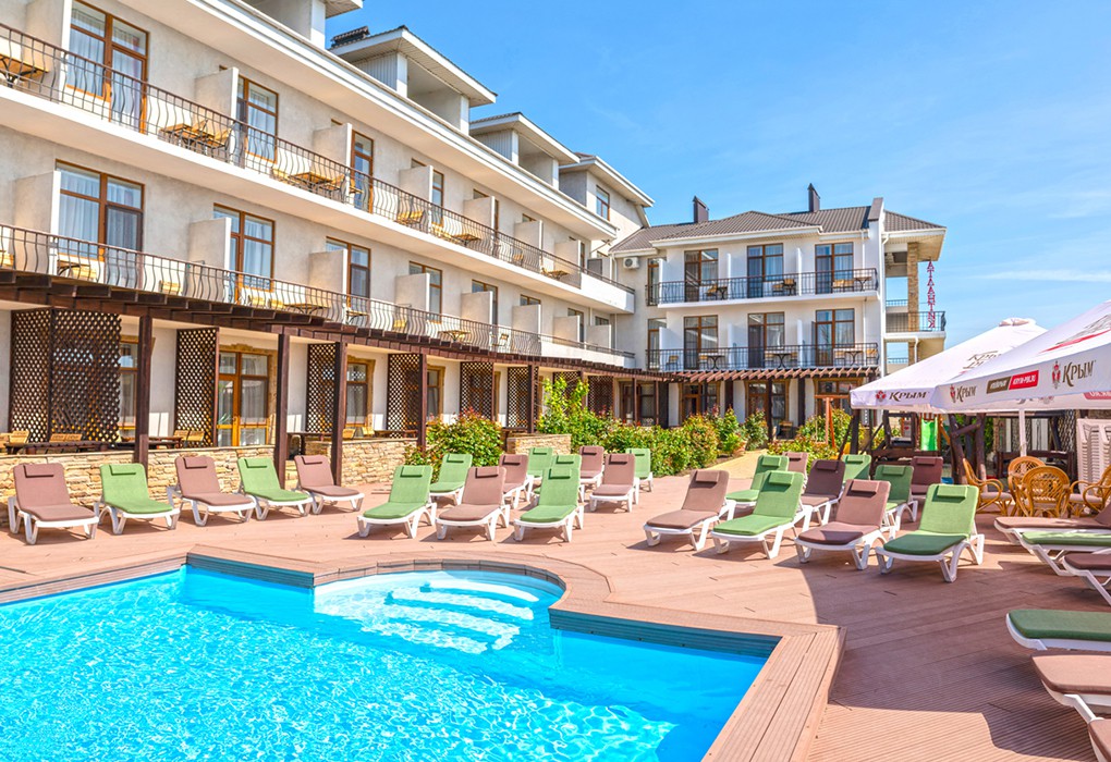 Объект вблизи знаменитого курортного города Феодосии, где есть много живописных улочек и культурных памятников, например, храм-маяк и музей художника Айвазовского. Внутренняя инфраструктура — это открытый бассейн для водных процедур с зоной отдыха и турецкий хаммам. Также гостям доступна парковка и услуги прачечной.