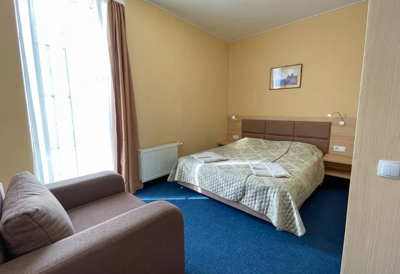 Площадь номера - 9-12 кв.м. 1 комната. 2 осн. места. вид на город и железную дорогу, балкон не во всех номерах. В номере: телевизор; холодильник; кондиционер; телефон; душ; туалет; фен; сейф; 1-спальные/ 2-спальная кровать; балкон (в части номеров).