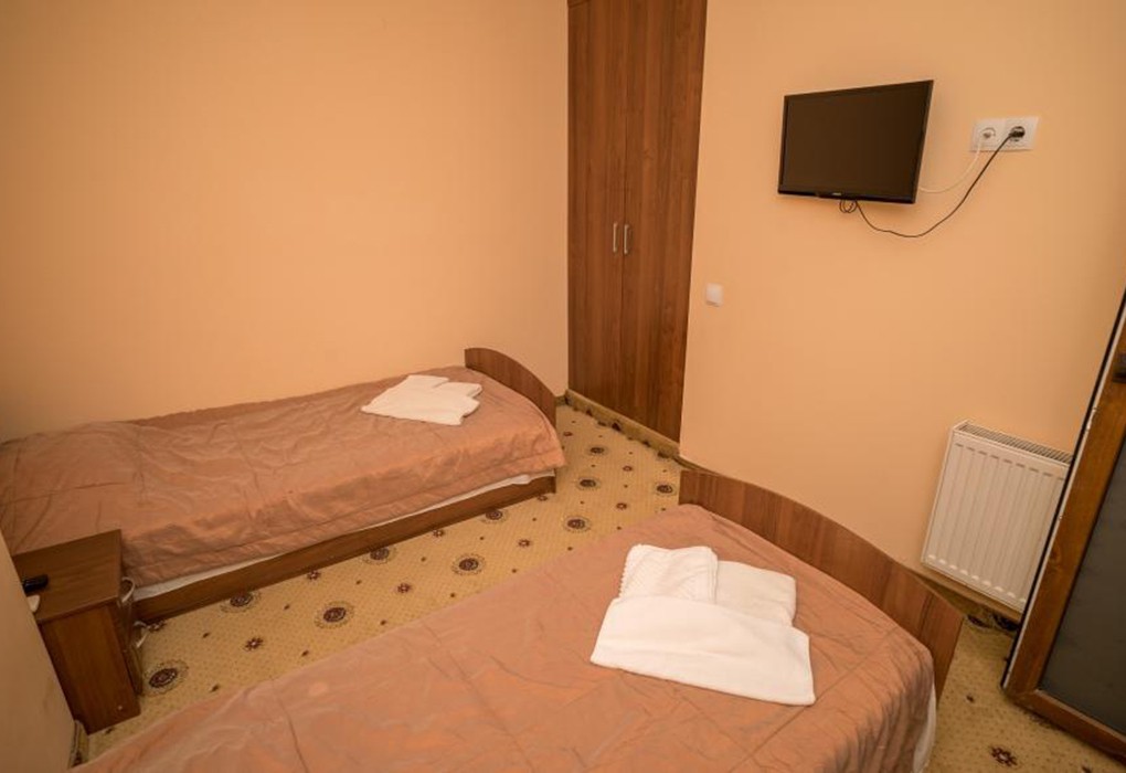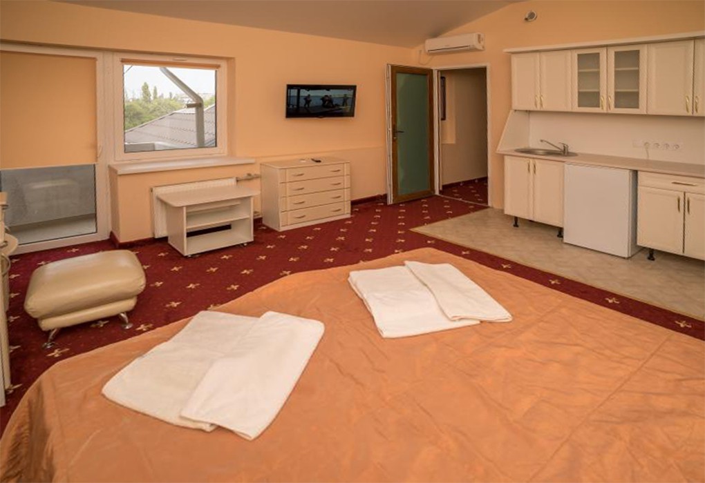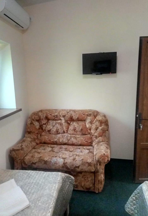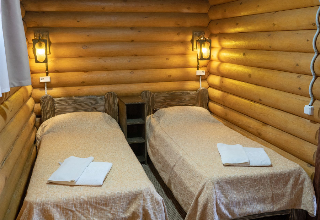 2 комнаты. 4 осн. места. макс. вместимость номера 4+1 ребенок до 12 лет или 4+2 ребенка до 6 лет (один с оплатой за доп. место, второй - без места). Номера расположены в корпусе на 4 этаже и на 1 этаже в срубе. Фактический интерьер у номеров внутри категории может отличаться от представленного на фотографиях. В номере: телевизор; холодильник; кондиционер; телефон; душ; туалет; фен; сейф; 2-спальная кровать; 1-спальные кровати. 1 доп. место: Еврораскладушка - может быть предоставлена для ребенка до 12 лет.